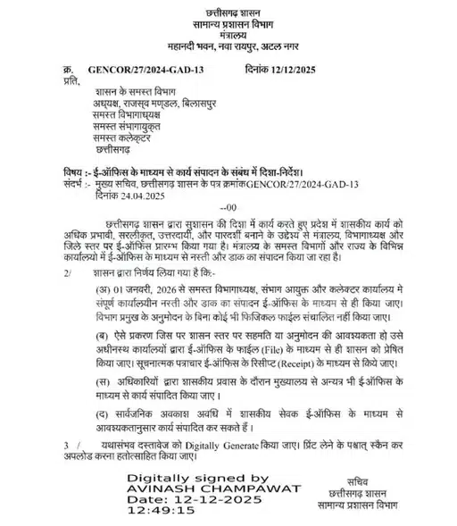 Chhattisgarh Digital Administration : CG में 1 जनवरी 2026 से पूरी तरह डिजिटल प्रशासन, फिजिकल फाइलों पर पूर्ण प्रतिबंध