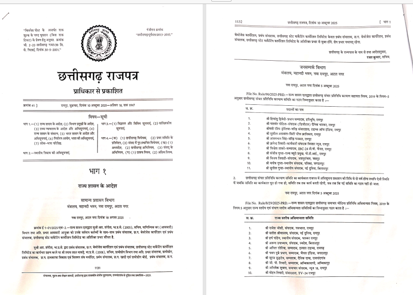 कोरबा/बिलासपुर। कोरबा जिले के पत्रकारों के लिए बड़ी राहत और गर्व की खबर — अब अधिमान्यता आवेदन पहचान की कमी या औपचारिक त्रुटियों के कारण अमान्य नहीं होंगे। छत्तीसगढ़ शासन ने पत्रकारों की अधिमान्यता और कल्याण के लिए गठित संभागीय अधिमान्यता समिति (बिलासपुर संभाग) में कोरबा के वरिष्ठ पत्रकार कृष्ण कुमार राठौर को सदस्य के रूप में नामांकित किया है। शासन की ओर से 10 अक्टूबर 2025 को आदेश जारी कर दिया गया है, जिसका राजपत्र में भी प्रकाशन हो चुका है।