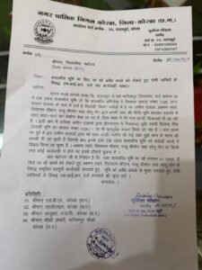 इस आवेदन की प्रतिलिपि एसडीएम कोरबा, तहसीलदार कोरबा, आयुक्त नगर पालिक निगम कोरबा और चौकी प्रभारी मानिकपुर चौकी को भी भेजी गई है।