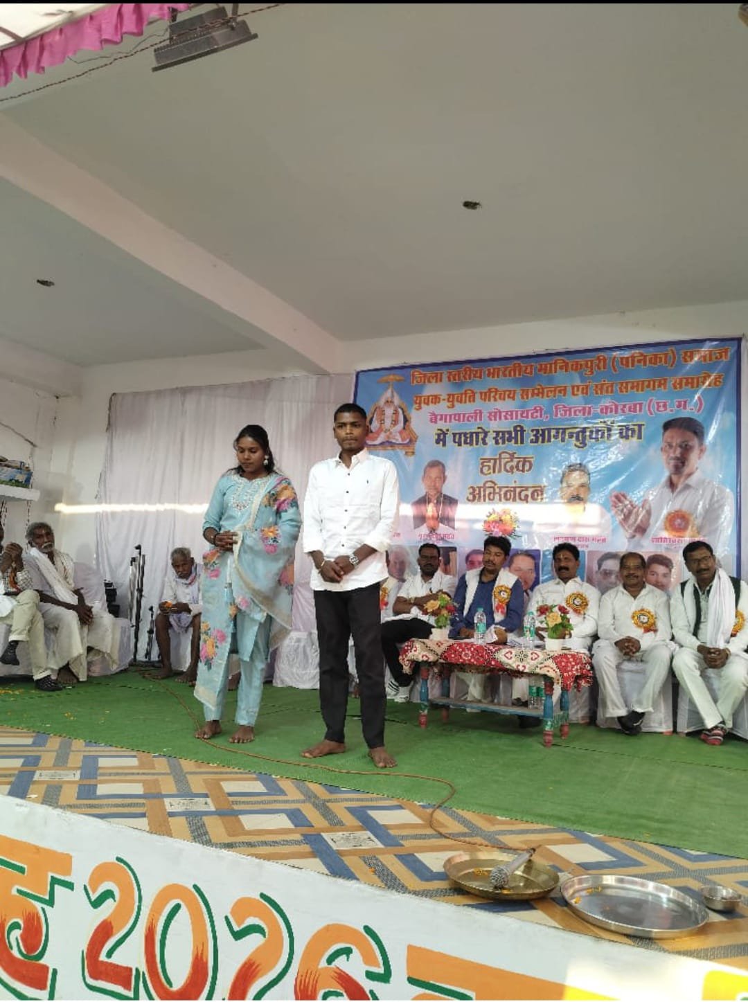 कोरबा जिले के ग्राम बैगापाली में आयोजित युवक-युवती परिचय सम्मेलन एवं धार्मिक ग्रंथ कार्यक्रम में भारतीय मानिकपुरी पनिका समाज के वरिष्ठ नेताओं ने भाग लिया। कार्यक्रम में समाज के वरिष्ठ नेताओं ने समाज में परस्पर सहयोग, भाईचारा और प्रेम की भावना को बढ़ावा देने का संदेश दिया।